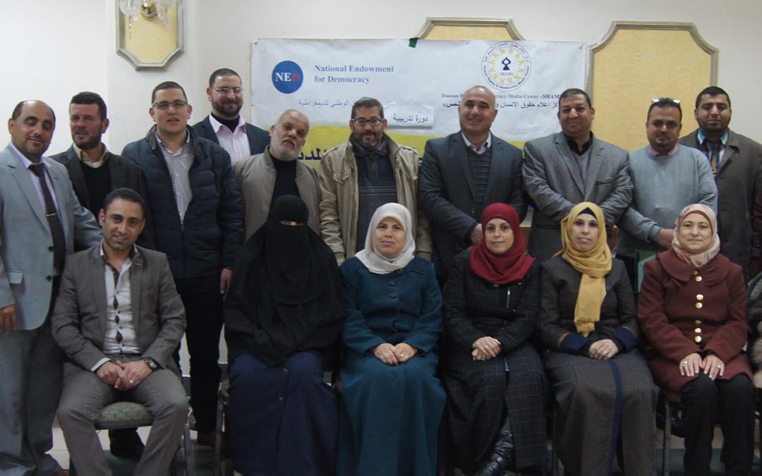 رام الله : اختتم مركز إعلام حقوق الإنسان والديمقراطية ” شمس” دورة التدريبية حول حقوق الإنسان والمواطنة لمعلمي ومعلمات التربية الإسلامية من مختلف مديريات التربية والتعليم في الضفة الغربية ، والتي تتضمن محاور عدة كمفهوم حقوق الإنسان، التطور التاريخي لها، المواثيق الدولية والإقليمية والعربية لحقوق الإنسان، والمواطنة بشقيها الحقوق والواجبات والتربية على المواطنة، والتي تأتي ضمن مشروع تعزيز ونشر مفاهيم الديمقراطية وحقوق الإنسان الممول من الصندوق الوطني للديمقراطية (NED).