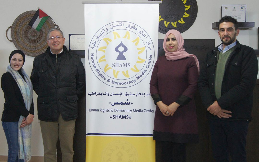 رام الله : استقبل طاقم مركز إعلام حقوق الإنسان والديمقراطية “شمس” في مقره بمدينة رام الله السفير الدكتور لويس اريلانو جيباجا سفير جمهورية الإكوادور لدى فلسطين . وفي مستهل اللقاء عبر الدكتور عمر رحال وزملائه عن سعادتهم لزيارة السفير للمركز ، شاكرين له دوره الكبير في تعزيز أواصر الأخوة والمحبة والتعاون بين الشعبين الصديقين . كما توجهوا بتحية شكر وعرفان إلى جهورية الإكوادور على مواقفها الثابتة الداعمة لفلسطين في المحافل الدولية والإقليمية .