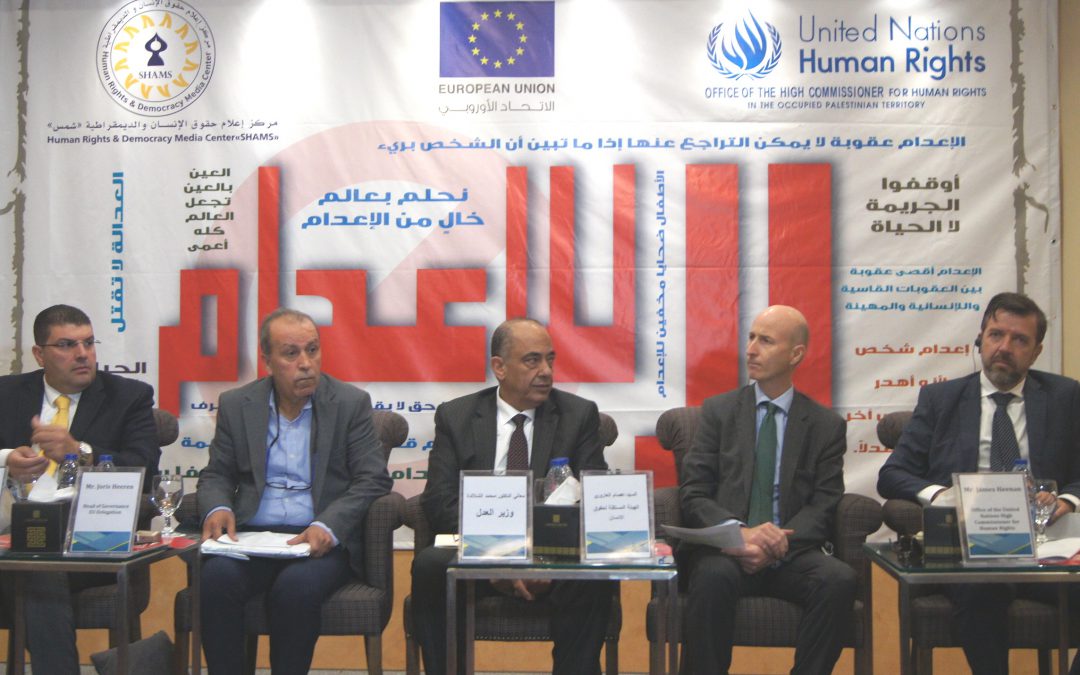 من جهته ذكر وزير العدل الفلسطيني الدكتور محمد الشلالدة أن عقوبة الإعدام تخالف الحق في الحياة، مبيناً أهمية وقف العقوبة من أجل تعزيز حقوق الإنسان، وأن الموقف القانوني للإلغاء نابع من الطبيعة الأساسية للحق في الحياة وعدم وجود أدلة على أن العقوبة وسيلة رادعه للجريمة، مؤكداً على ضرورة موائمة التشريعات الوطنية الفلسطينية مع البرتوكول الاختياري الثاني للعهد الدولي للحقوق المدنية والسياسية الهادف لإلغاء عقوبة الإعدام، وبالذات ضرورة مراعاة التزامات فلسطين الدولية في مشروع قانون العقوبات الفلسطيني الذي ينبغي له احترامها، وإنشاء الآلية الوطنية لمناهضة التعذيب.