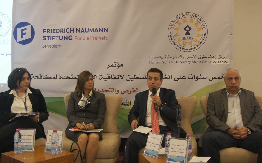 رام الله: نظم مركز إعلام حقوق الإنسان والديمقراطية “شمس” بالتعاون مع مؤسسة فريدريش ناومان للحرية مؤتمراً تحت عنوان ” خمس سنوات على انضمام فلسطين لاتفاقية الأمم المتحدة لمكافحة الفساد : الفرض والتحديات”، شارك فيه ممثلي عدد من الوزارات ، والأجهزة الأمنية وجهات إنفاذ القانون، ممثلي عدد من المحافظات والبلديات ، المجلس التشريعي، ومؤسسات المجتمع المدني المحلية والدولية، لجنة الانتخابات المركزية، ممثلي الكليات والجامعات، رجال الإصلاح والقضاء العشائري، محامين، صحفيين، باحثين، أكاديميين، وطلبة جامعيين.