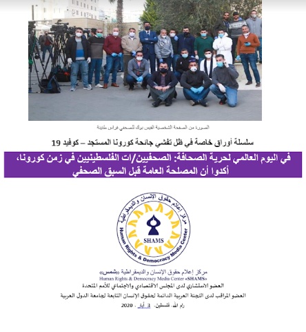هذا العام يأتي اليوم العالمي لحرية الصحافة ضمن ظروف خاصة واستثنائية رفعت من المهام الملقاة على عاتق الصحفيين تسبب في ها وباء فيروس كورونا العالمي، والإجراءات التي اتخذتها حكومات العالم بما فيها الحكومة الفلسطينية للحد من تفشي الفيروس ومحاربته، بما في ذلك الحجر المنزلي الإلزامي المغروض على المواطنين والحد من التنقل والقيود على حرية الحركة وإعلان حالة الطوارئ، وهو ما خلق تحديات غير مسبوقة للصحفيين، إذ يتطلب الموقف منهم تغطية الحدث ونقل الخبر للجمهور، وفي الوقت نفسه الحذر من الوقوع في الشائعات في ظل ما تخلقه الأزمات من سرعة تداول ونقل وتلقف وسبق، والحفاظ على سلامتهم عند الذهاب للمناطق الموبوءة بما يحميهم وذويهم، والقدرة على التنقل بين الحواجز الأمنية والمحافظات في ظل الإغلاق، وتجنب الاحتكاك مع المواطنين تطبيقاً لسياسة التباعد الاجتماعي، والالتزام بقواعد الأمن الصحي في تطهير وتنظيف المكاتب وأدوات العمل يومياً، وهو في السياق الفلسطيني يتداخل مع الوجود الاستعماري الإسرائيلي العنيف الذي لم يوقف انتهاكاته بل استغل الجائحة للمباغتة في تنفيذها، ما يحتم على الصحفيين التغطية على أكثر من جبهة للحدث وبالدقة والموضوعية المطلوبة . في تحديات لها تأثير هائل وغن كان في بعض الحالات غير مرئي على الصحفيين.
