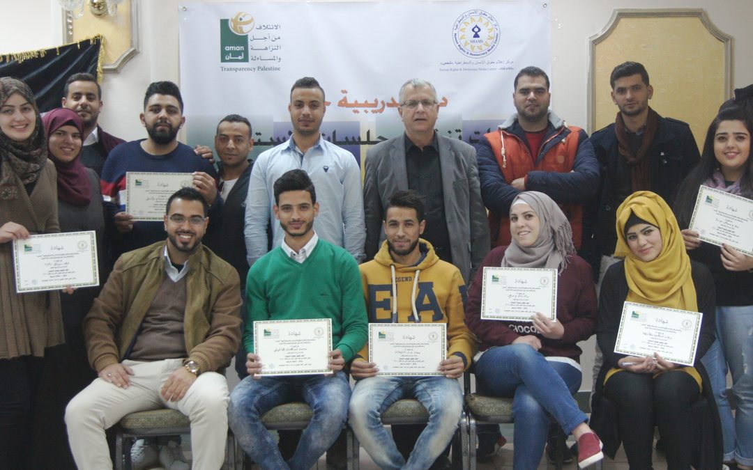 رام الله: نظم مركز إعلام حقوق الإنسان والديمقراطية “شمس” دورة تدريبية حول آليات “تنظيم جلسات الاستماع والمساءلة لطلبة الجامعات (القدس المفتوحة، الجامعة العربية الأمريكية، القدس، الخليل ،بير زيت، النجاح الوطنية)، والتي عقدت في مدينة رام الله وذلك على مدار ثلاثةُ أيام ، بالتعاون والتنسيق وبدعم من الائتلاف من أجل النزاهة والمساءلة “أمان”. وقد افتتح الدورة عادل غيظان من مركز “شمس” مرحباً بالجميع وقال أن الهدف من وراء هذه الدورة هو بناء قدرات مجموعة من الشباب وتزويدهم بالمهارات الأساسية لعقد وتصميم جلسات الاستماع .وإلى رفع مستوى الوعي وتبادل المعرفة حول مفاهيم وتطبيقات المساءلة الاجتماعية. وإلى تسليط الضوء على أفضل الممارسات لأدوات المساءلة الاجتماعية ،والتركيز بشكل خاص على دور المساءلة الاجتماعية في تحسين الخدمات العامة.