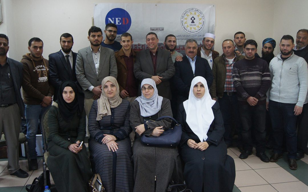 Ramallah: human Rights and Democracy Media Center “SHAMS” completed a training course for Sharia students on critical thinking and freedom of opinion & expression. Attended by a number of students who study sharia in different colleges and universities in the West Bank. This course is a part of the project enhancing civil culture among Sharia students, which is implemented by the center in collaboration with National Endowment for Democracy (NED).
