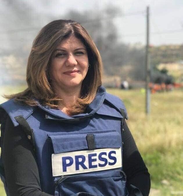 Human Rights and Democracy Media Center- “SHAMS”, condemns strongly the Israeli occupation’s crime of murdering the Palestinian journalist, Martyr Shireen Abu Aqla, correspondent of Al- Jazeera Satellite Channel, this morning (Wednesday 11/5/2022) in Jenin. Martyr Abu Aqla was targeted directly by an Israeli military sniper with a bullet in her head while she was in the field covering the attack of the occupation committed against Jenin Refugee Camp. Murdering Shireen is within the series of crimes that the occupation’s army commits against women and children in clear interpretation of its racism socialization and doctrine that is based on killing, bloodshed, and destruction. It is clear that the Israeli occupation ignores the international conventions and treaties and principles as well as the rules of wars in its practices against Palestinians and against journalists as well.